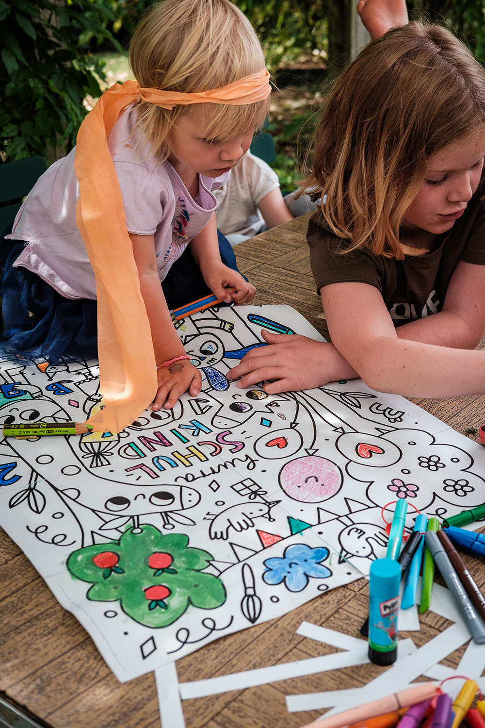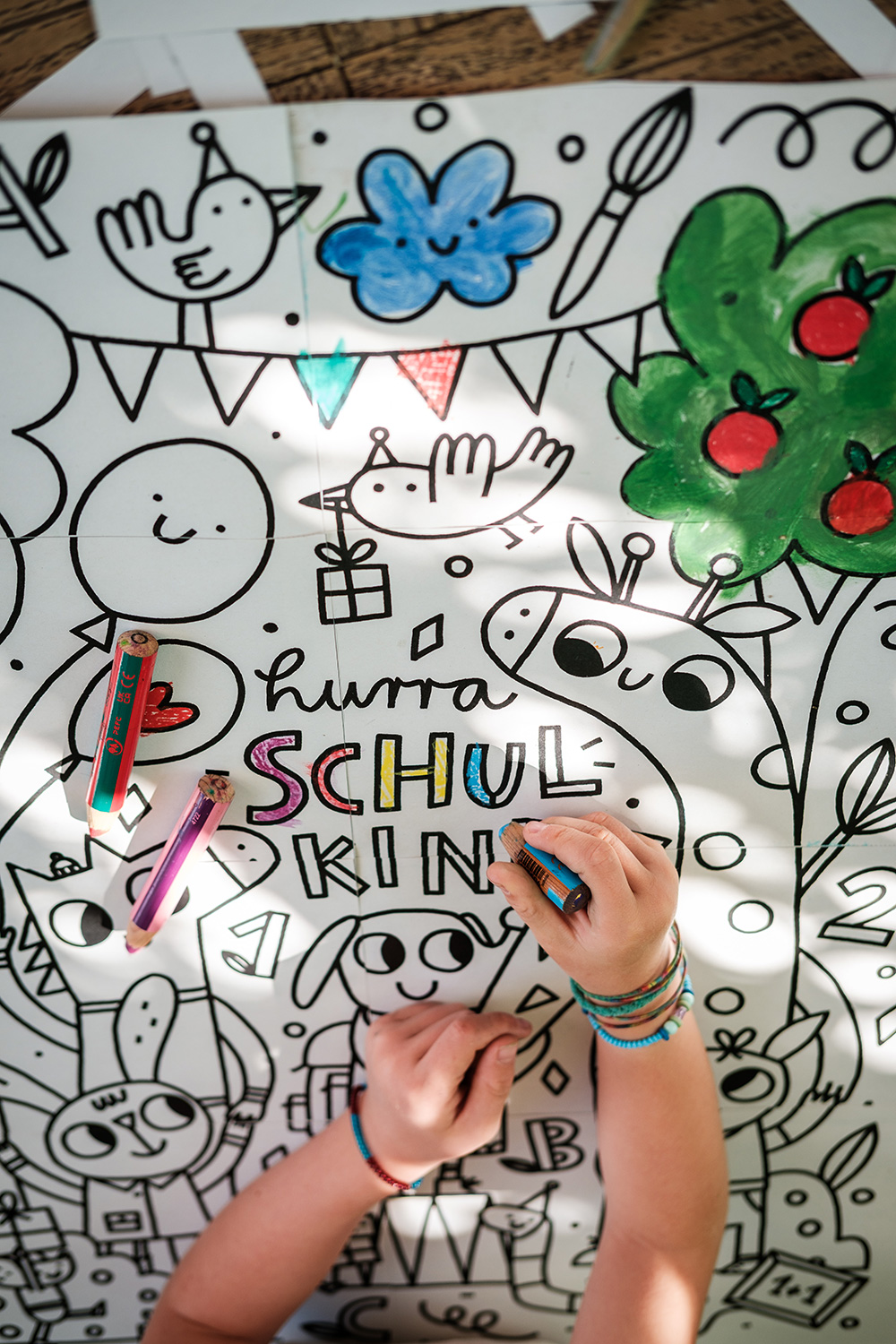 Jetzt malen wir uns den Start in die schönste Schulzeit mit all unseren Gästen kunterbunt – und das im extra großen XL-Format. Dank des Ausmalposters hast du gleich ganz viele kreative Möglichkeiten und die schönste Beschäftigung für die ganze Familie. Du kannst die Motive kunterbunt ausmalen oder das Poster als Pausvorlage für Kunst mit abwischbaren Kreidestiften auf deinen Fensterscheiben verwenden. Mache doch einfach beides!