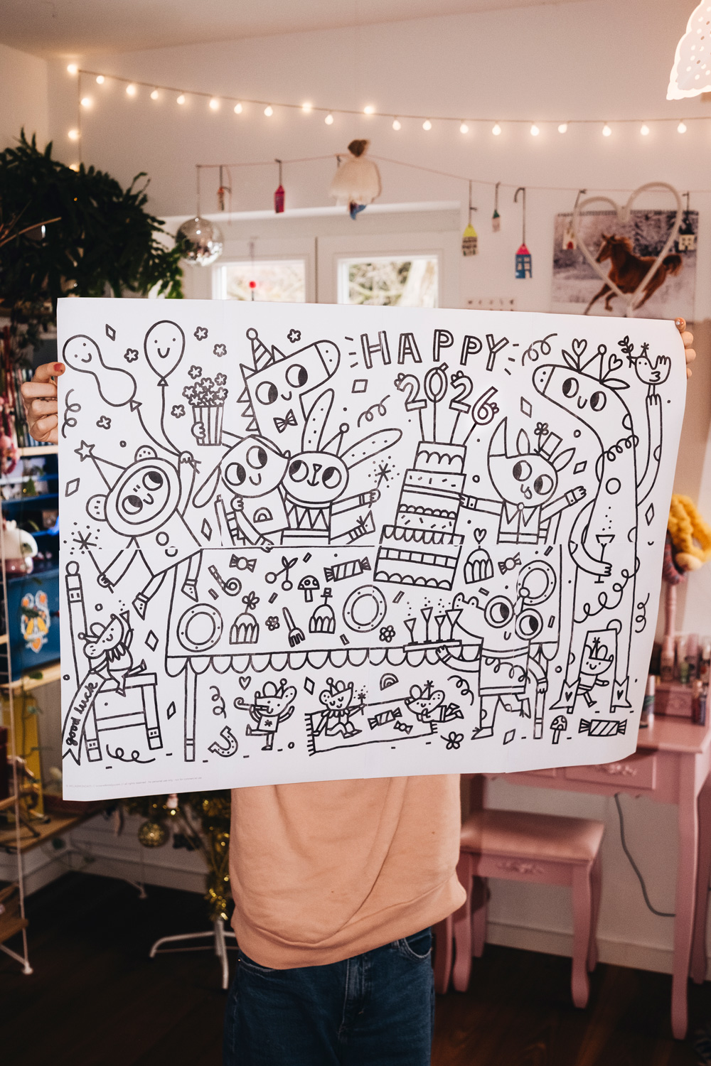 Du Glückspilz hast mit diesem XL Poster einen bunten Ausmaljoker im Ärmel, um die langen Stunden bis null Uhr für die ganze Familie kreativ zu verkürzen. Tanzt auf dem Basteltisch und starte gemeinsam kreativ ins neue Jahr!