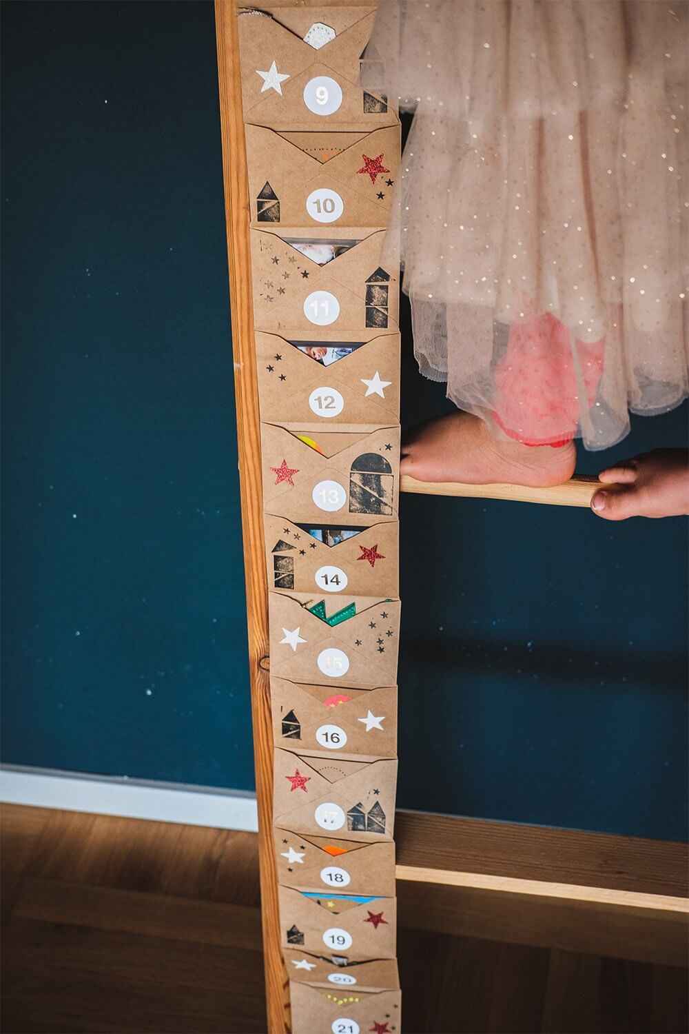 Zum Set gehören die Briefumschläge aus Kraftpapier und zusätzlich kannst du weitere Produkte auswählen, um deinen Bastelfundus mit den passenden Materialien zum Dekorieren des Adventskalenders zu ergänzen.