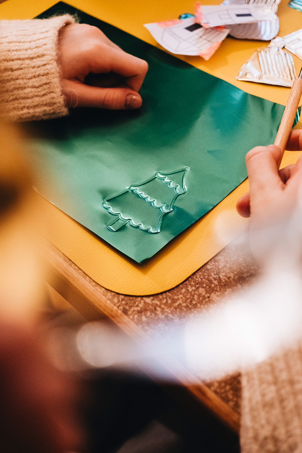 Wenn der Prägestift weich über die kühle Metallfolie gleitet, wird deine Fantasie schnell fliegen. Die dreidimensionale Haptik der glänzenden Kunststücke ist einzigartig und deine Finger möchten immer wieder darüber streichen. Magie! Gestalte damit Girlanden, einzelne Hängerchen für Zweige oder Grußkarten.