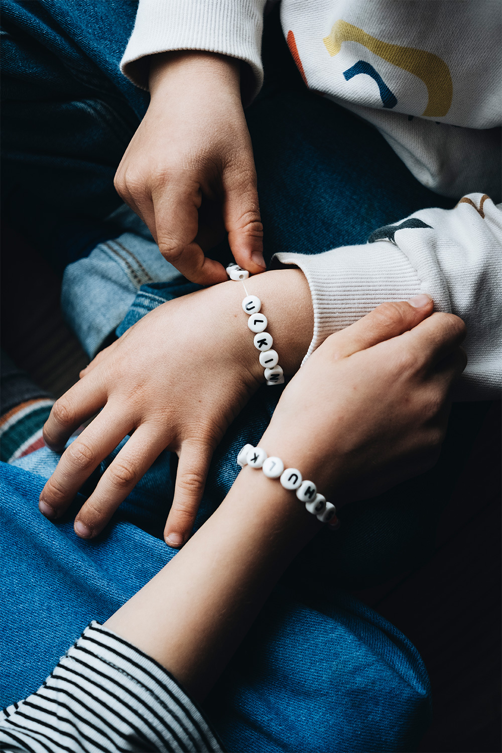 Was für eine coole Geschenkidee für kleine Schulkids! Die Perlen-Armbänder sind schnell gemacht und ein richtig mutmachender Talisman für den aufregenden Start in die Schulzeit. In diesem Set haben wir für dich die besonders hochwertigen Keramikbuchstaben ausgesucht und sie lassen das Schulkind-Armband so richtig glänzen. Kombiniere dazu bunte Perlen und finde deine liebste Farbmischung.