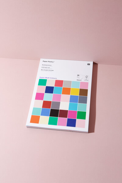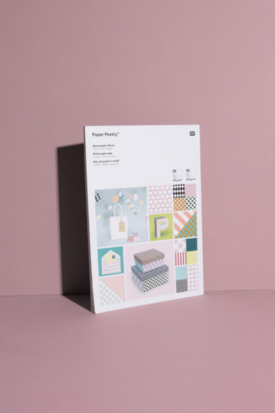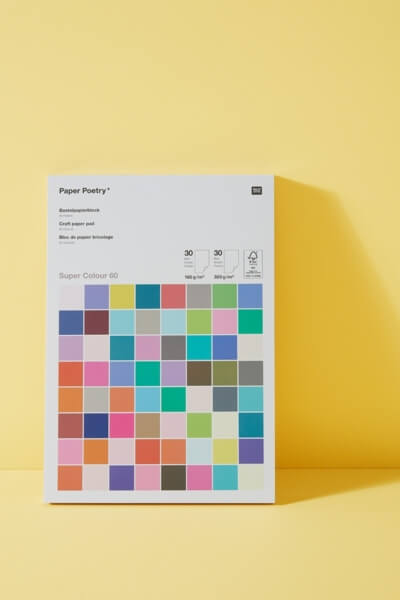 Der Block hat 10 Blätter in verschiedenen “Glamour” Farbtönen. Die Rückseite der Bögen ist weiß.