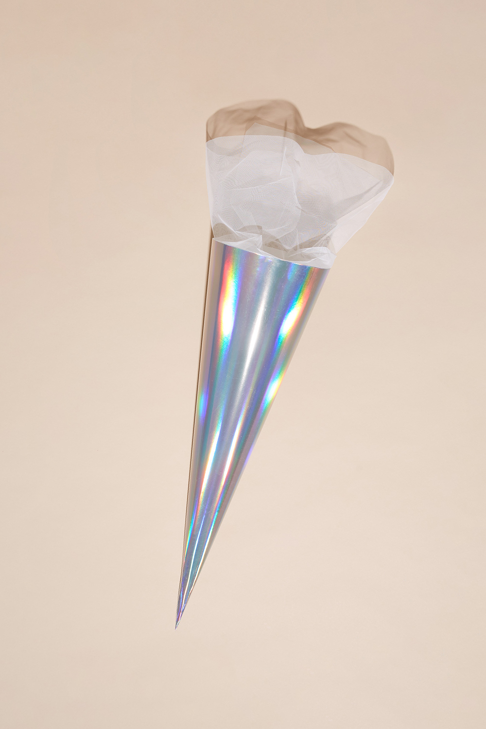 Dank des schon integrierten Tüllverschlusses kannst du dich bei diesem strahlenden Bastel-Rohling komplett auf das Dekorieren konzentrieren und wirst in wenigen Bastelschritten deine ganz persönliche Geschwister-Traumtüte in den Händen halten. Die Geschwister-Schultüte ist aus stabilem Holographie-Karton gefertigt. Das folierte Papier hat eine spiegelnde Oberfläche und kann fabelhaft mit Stickern beklebt werden.