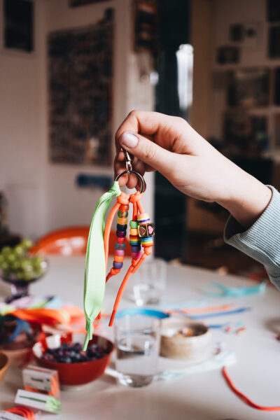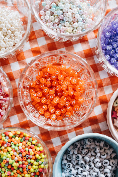 Kennst du schon die praktischen Sortierboxen? Damit bleiben alle Perlen hübsch nach Farben sortiert und können einfach verstaut werden. Die Perlen lassen sich gut mit elastischer Perlonschnur oder buntem Gummiband auffädeln.