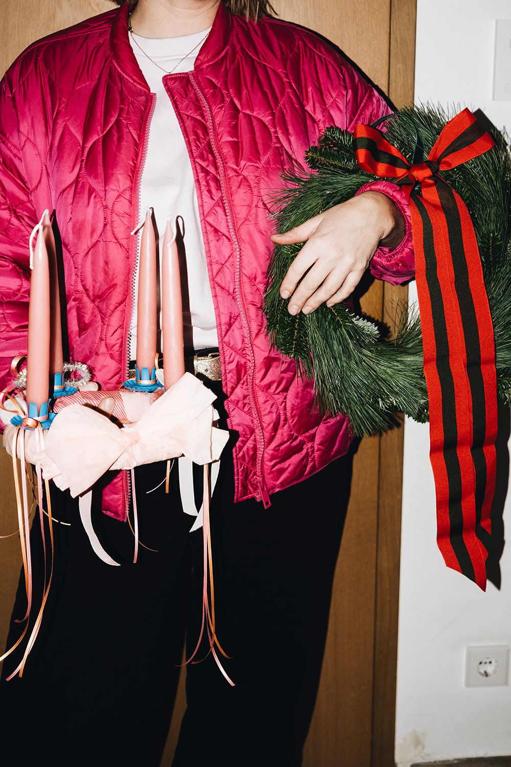 Zum Umwickeln von Kränzen wählst du am besten das breite Band, für das Basteln von Papierblumen ist das schmale Band perfekt.