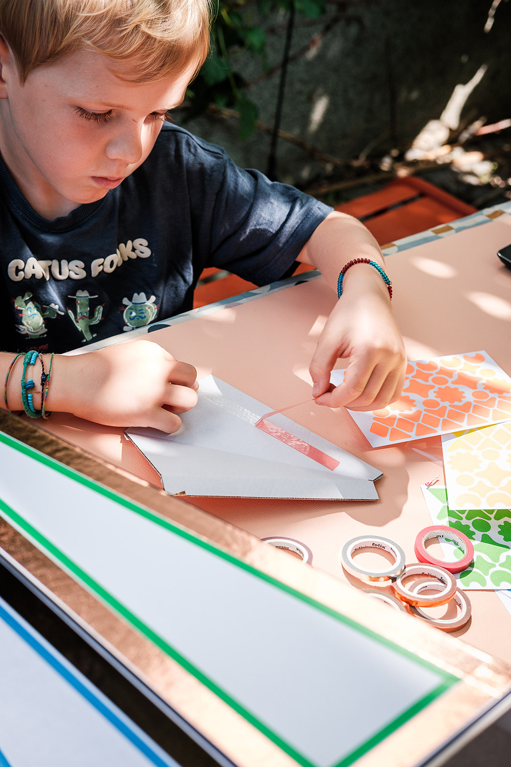 Einfach nach Lust und Laune gestalten – zum Beispiel mit schillernden Klebebändern – und schon verwandelt sich der Schultüten-Körper ruckzuck in ein einzigartiges Weltraum-Flugobjekt. So wird das Basteln zum Kinderspiel und das Ergebnis zum absoluten Highlight auf dem Schulhof.