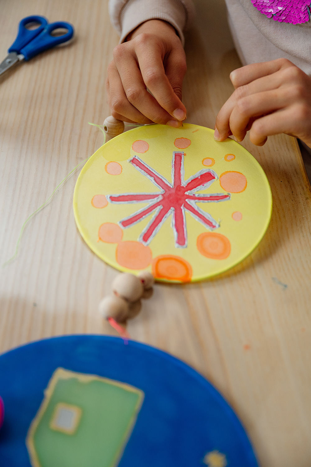 Gib deinen Kunstwerken nun die große Bühne und hänge sie ins Fenster. So schickst du gute Bastellaune in die Welt und hast die schönste Dekoration für die dunkle und festliche Jahreszeit erschaffen. Applaus für dich!