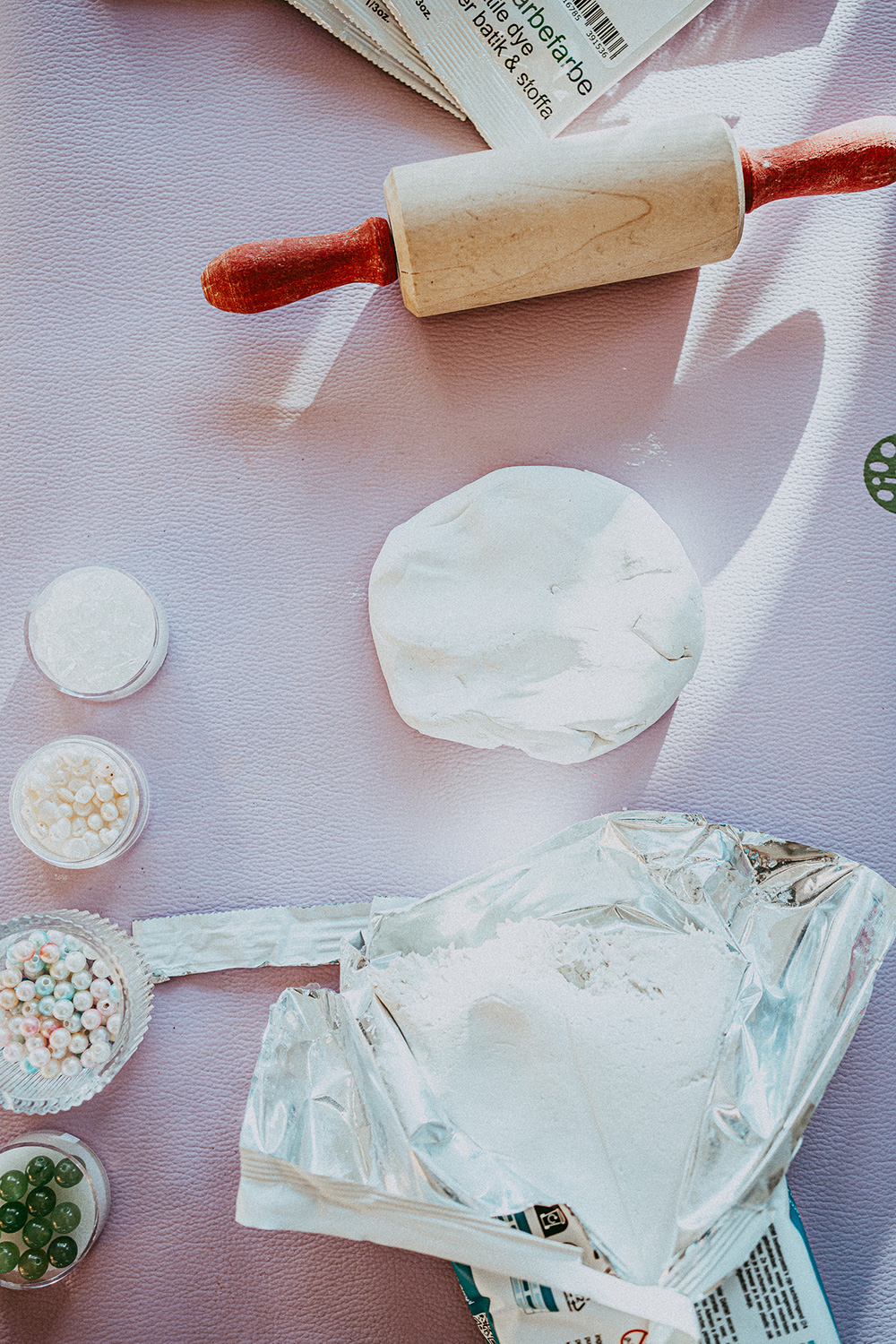 Rolle die Masse ca. 5–8 mm dick aus. Du kannst die Ränder bewusst etwas ungleichmäßig lassen, damit das Bild einen organischen, natürlichen Charakter bekommt.