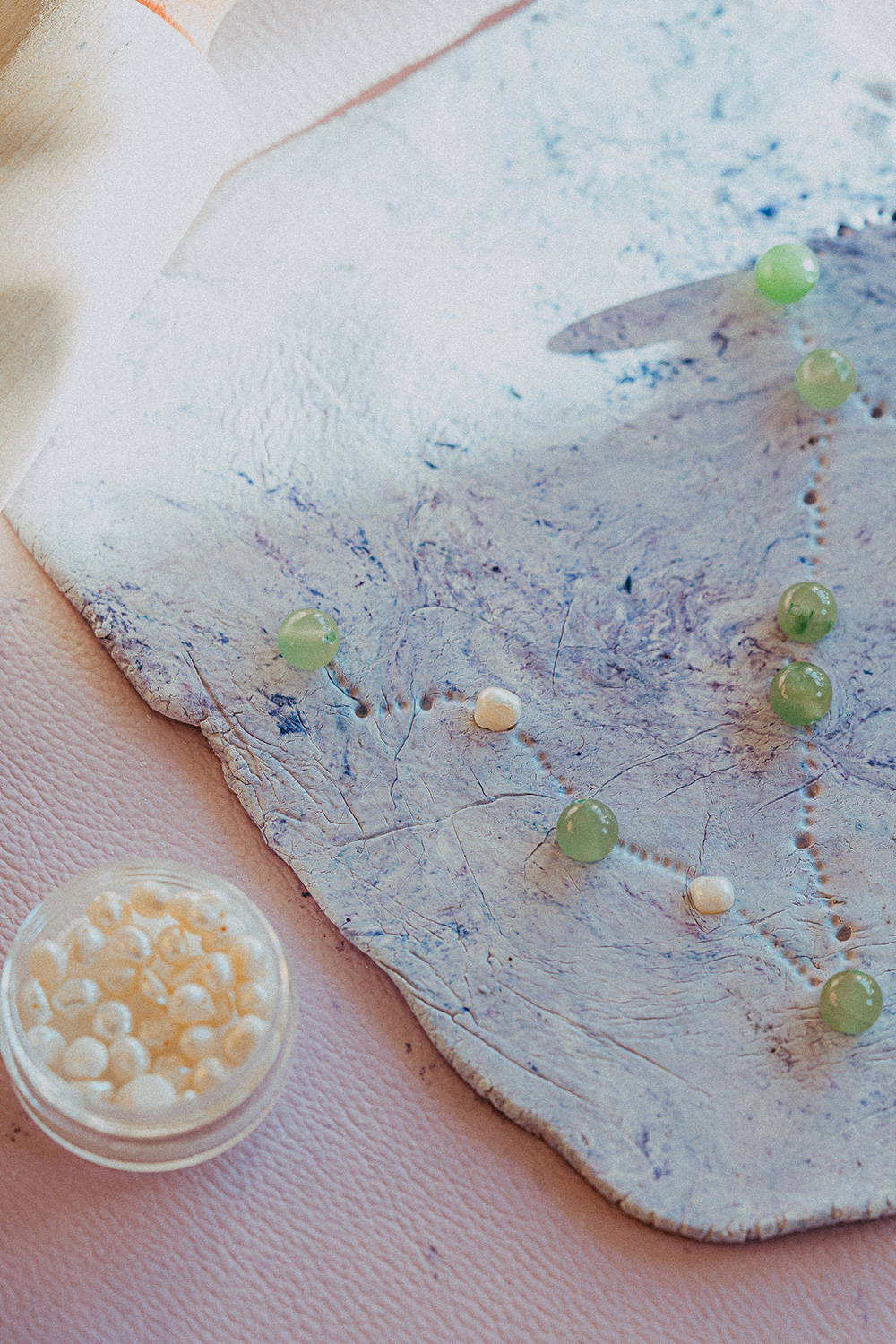Drücke die Edelsteine in die Hauptpunkte und die kleineren Perlen in die Zwischenstationen.